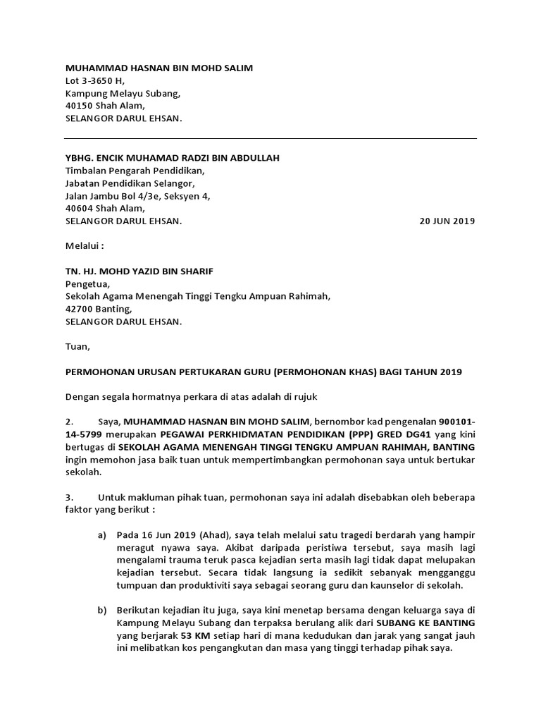 Contoh Surat Rayuan Pertukaran Pdf